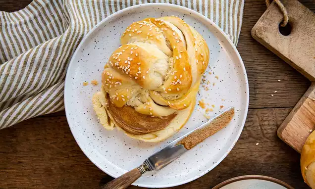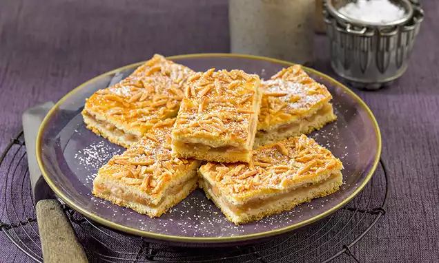 Marzipancrème auf dem Tarteboden verteilen und mit der Blaubeerfüllung belegen. Restlichen Teig auf einer leicht bemehlten Arbeitsfläche ausrollen und zu 14 gleich dicken Strängen schneiden. Je zwei Stränge miteinander zu Zöpfen verflechten. Zöpfe in Bahnen dicht an dicht auf die Füllung legen und mit Eigelb bepinseln.