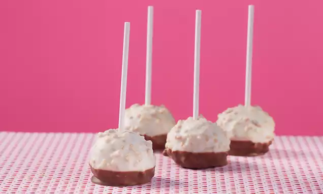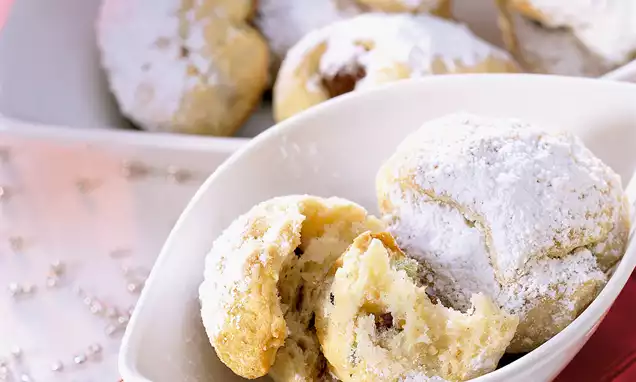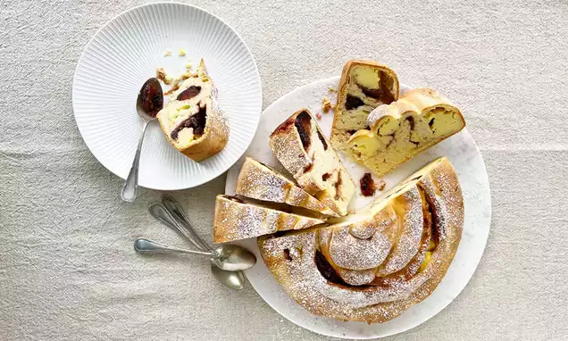 Herausnehmen und auf ein Backpapier stürzen. Das mitgebackene Backpapier sofort entfernen. Mit dem Ausstecher 12 Biskuits ausstechen.