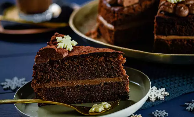 Vor dem Servieren die Torte mit den Granatapfelkernen verzieren.