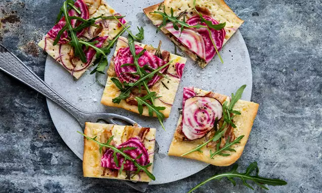 Abaisser la pâte sur un peu de farine et la poser sur la plaque. Laisser encore lever pendant env. 10 minutes.