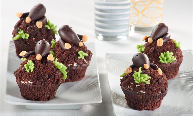 Preparare l’impasto seguendo le istruzioni riportate sulla confezione, distribuirlo uniformemente negli stampi per muffin e cuocere sul ripiano centrale del forno preriscaldato per ca. 25-30 minuti.