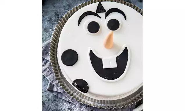 Stendere il disco di pasta di zucchero fino a farlo diventare più grande (ca. 36 cm di Ø) e posizionarlo sulla torta. Far aderire e livellare la pasta di zucchero al bordo della torta, facendo attenzione a non creare delle pieghe. Tagliare la pasta di zucchero in eccesso. Guarnire la torta con gli Smarties® messi da parte, aiutandosi con la Scrittura decorativa.